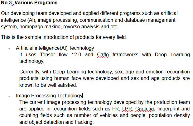 The capabilities of this group are wide ranging and include leads off with information about their AI development capabilities, but also details capabilities including: image processing including facial recognition, license plate recognition (LPR), eye monitoring, people counting, fire and smoke detection, web development, and software engineering.