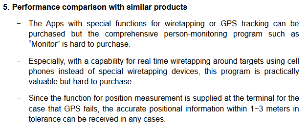 The second document describes a comprehensive Android surveillance platform consisting of a web based control server and a silent terminal implant installed on a target device. The document is straightforward about what the software’s purpose is, describing it as a “target-monitoring program” designed to “remotely monitor the position, conversation, message and ambient environment” of a specified person.