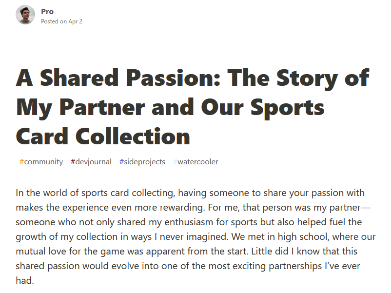 To further build credibility a persona James Jhon that shares a profile picture with vexxloso has been consistently posting on dev.to about their new sports card project