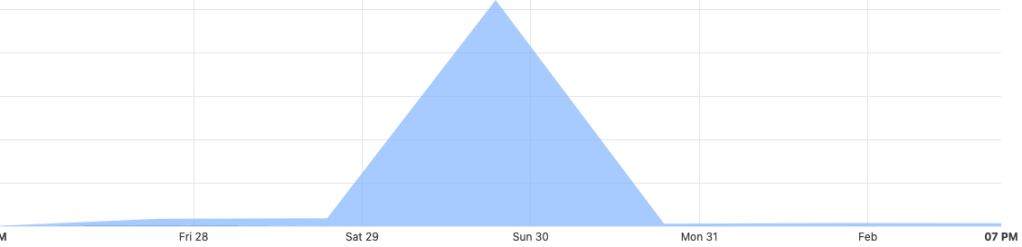 If I can re-use my graph that I created the other day right around the final outage my website that is similar to the DPRK website received over 41,000 requests in the span of a minute and a half. Specifically right around the end of the 2.5 hour gap is when I saw things spin up.