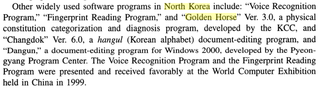 I’ve never heard of the Golden Horse program but some more digging reveals that it’s  “a physical constitution characterization and diagnosis program”: https://books.google.com.sg/books?id=JIlh9nNeadMC&pg=PA249&lpg=PA249&dq=%22golden+horse%22+%22north+korea%22+-paektu+-award+-film+-awards&ots=gy_sDcyaaW&sig=ACfU3U0CciFH3au9bwWz8g2d7MD-H2-XMA&hl=en#v=onepage&q=%22golden%20horse%22%20%22north%20korea%22%20-paektu%20-award%20-film%20-awards&f=false